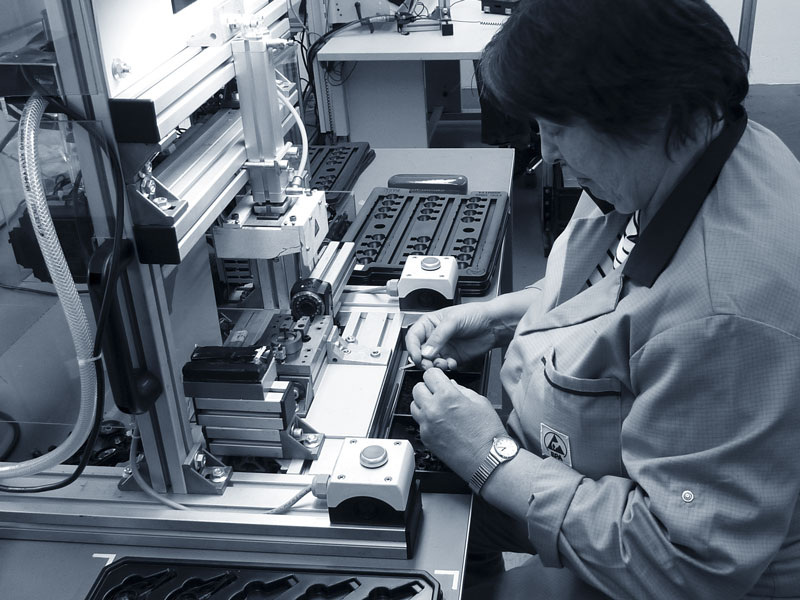 Auch bereits bei geringen Stückzahlen lohnt sich ein automatischer Montageprozess. Hier fließt das Know How und die Leistung unserer Automatisierungstechnikabteilung ein.