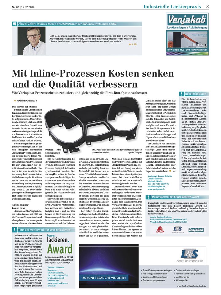 Die Varioplast Konrad Däbritz GmbH haben einen Artikel in der besser lackieren Zeitschrift veröffentlicht.