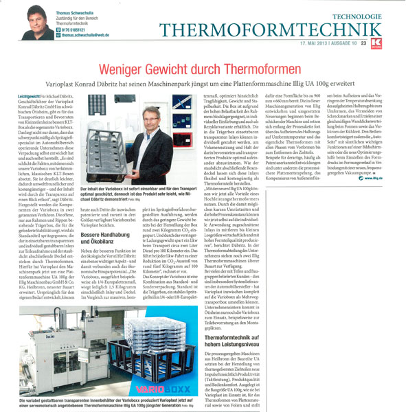 Varioplast Konrad Däbritz hat seinen Maschinenpark jüngst um eine Plattenformmaschine Illig UA 100g erweitert.